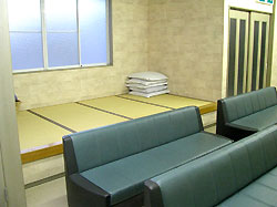 ![]() ↑高齢者や乳幼児を連れた親御さんに好評な 待合室の畳スペース |