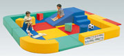 商品には、すべてがウレタン性のクッションや遊び道具であったり、足をバタつかせても音や振動を阻止するマットであったり、省スペース用に設計されたものなどと、いずれもカラフルで子供がその場に集中できる工夫が施されています。